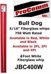 ProComm JBC400B Bull Dog 4 Ft. Fiber Glass Whip CB Antenna (Black)