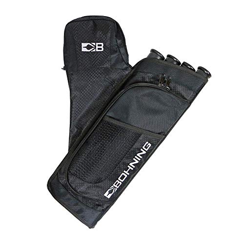 Black Sky Edition quiver with superior durability and water repellent. Constructed of premium Cordura and Ripstop nylons. Comes with four high capacity, durable, solid base arrow tubes that easily fits 6 standard arrows. Two zipperd storage compartments to hold all of your shooting accessories. Easy to access the mesh pockets and pencial storage area. Belt style quiver fits up to a 3" wide belt.