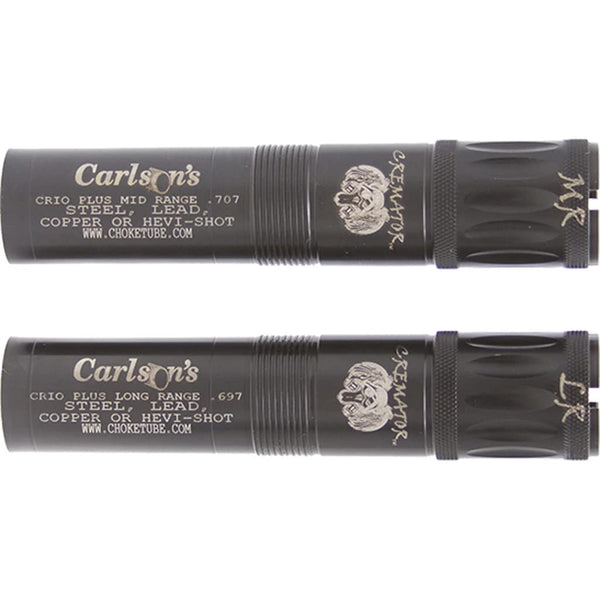 CARLSON’S CHOKE TUBES COMPATIBLE WITH BENELLI CRIO PLUS CREMATOR NON-PORTED WATERFOWL CHOKE TUBES Carlson’s Cremator Choke Tubes feature our Triple Shot Technology (TST) and is offered in close mid and long-range constrictions. TST is a series of three graduated rings in the taper section of the choke tube that allows a more gradual transition from the shotgun bore to the final constriction. These design offers reduced pellet deformation, less flyers, and more dense patterns. These benefits make the Cremator Series extremely effective on all types of waterfowl throughout the entire season. The Cremator series has no size or speed restrictions with steel shot in any of the three constrictions. You also get all the benefits of an extended choke tube, including a 25% longer parallel section for tighter and more dense patterns, wrench-less installation, quick removal and helps with muzzle protection. They are offered in your choice of ported or non-ported configurations. Like all of our tubes Carlson’s Cremator Series Choke Tubes are made in the U.S.A., carry a lifetime warranty, and are precision-machined from heat-treated 17-4 stainless steel.