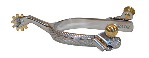 Get your job done on the ranch or in the arena with these Engraved Stock Spurs. This pair of womens' stock spurs are an engraved silver with gold details.