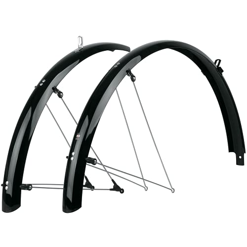 The B53 Commuter II Fender set fits 700c x 38-47 and is a classic full fender. As with all SKS Bluemels, our fenders are robust and rigid with aluminum strips sandwiched between a plastic coating. A safety front fender release system is included and should be used. 53mm wide profile is compatible with 700c/28"/650b/27.5 wheels. Fender requires frame eyelets or can be mounted with frame clamps (available separately).